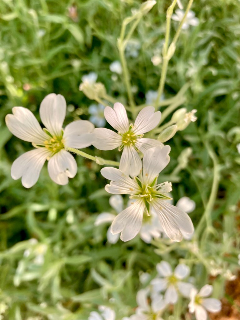 I enjoy the different plants flowering, feel the trees shadow from the sun.