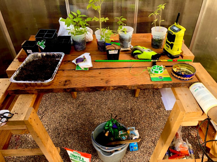 There I built my dream garden, green house and everything. It was a lot of work, and with my various ailments took nearly all spring to build with help from friends. But it is my favorite place in a big yard with lots of favorite places to hide.